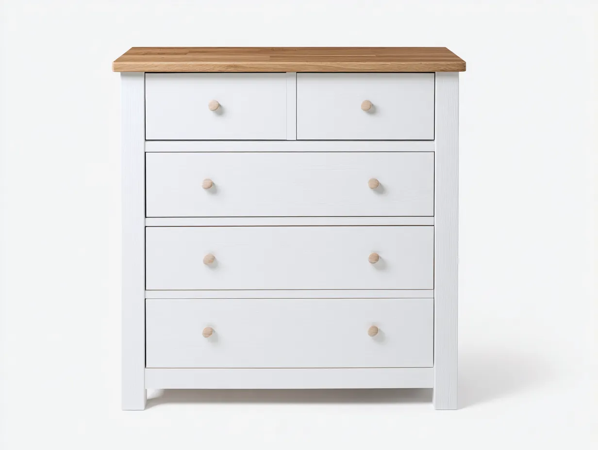 Commode-bois massif-82x42x88 cm-Blanc-Naturel-style campagne moderne