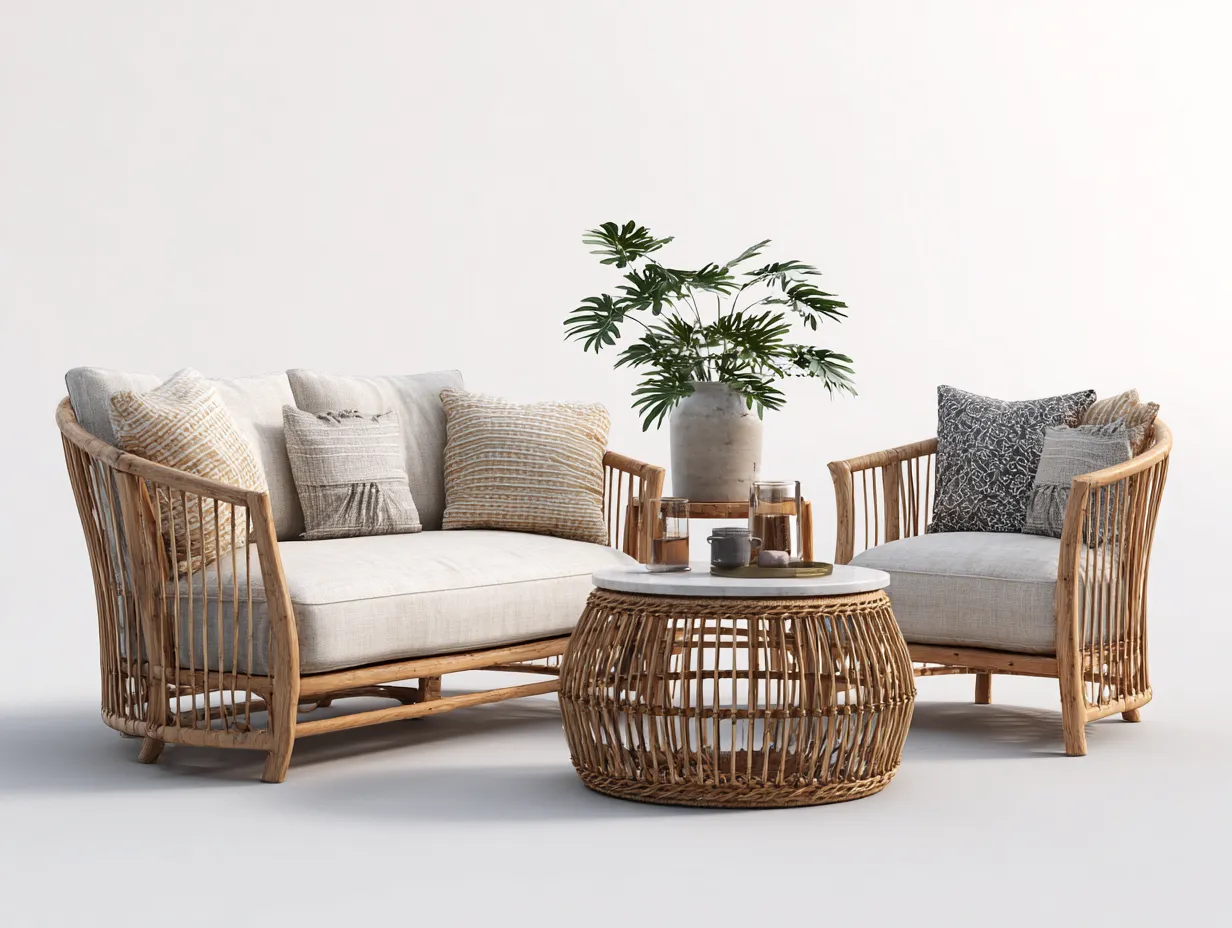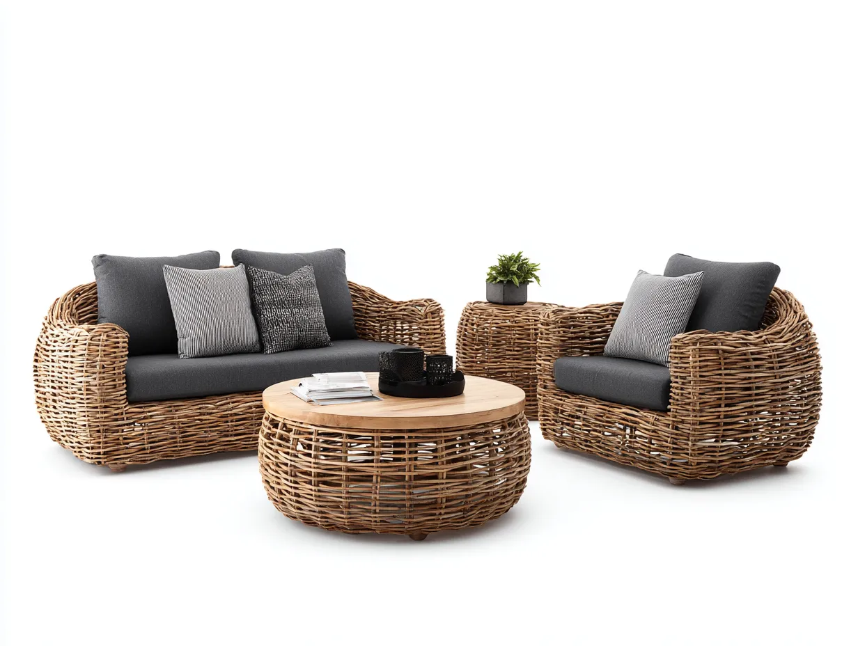 Canapé de jardin-rotin naturel-polyester-158x86x76cm-naturel-beige-style bohème contemporain