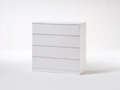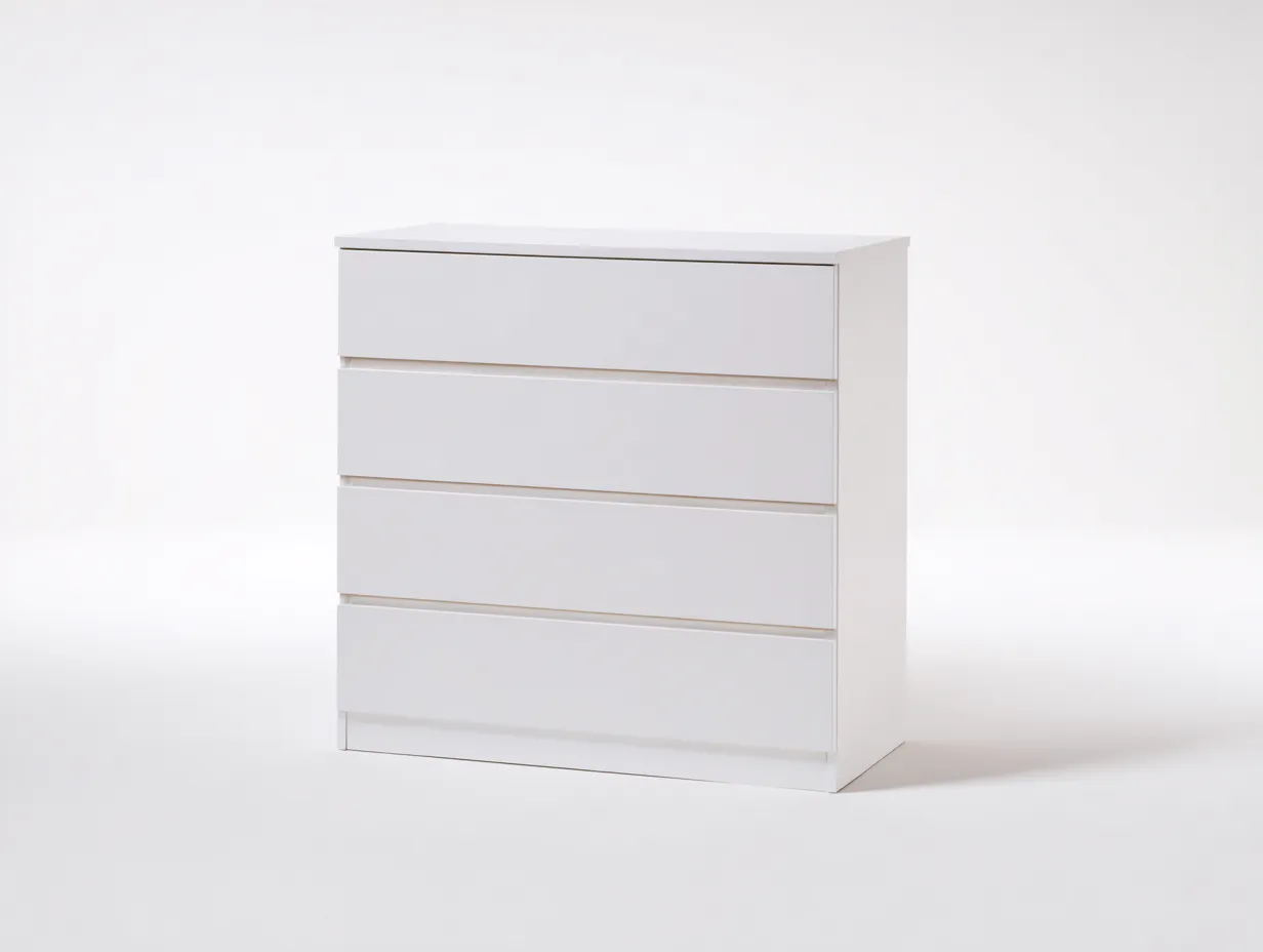 Cette commode au design moderne épuré est pensée pour s'intégrer facilement dans une chambre, un dressing ou un espace de rangement contemporain. Sa finition blanche homogène et ses lignes nettes apportent une sensation de clarté et d'équilibre visuel, idéale pour un intérieur sobre et fonctionnel.