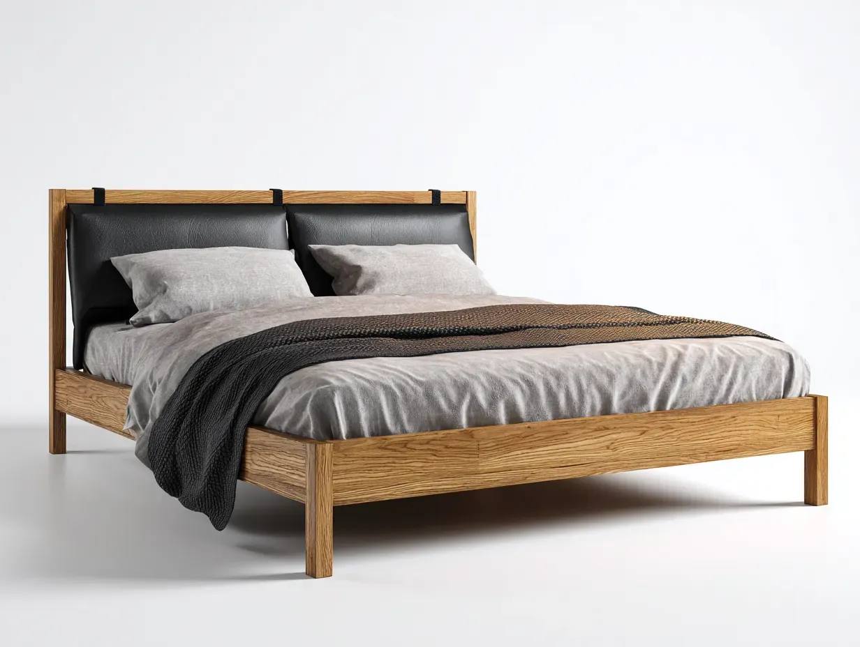 Ce lit double est destiné à une chambre à coucher adulte et à un usage quotidien. Sa structure en bois aux lignes épurées, associée à une tête de lit sobre, permet une intégration harmonieuse dans des intérieurs contemporains.